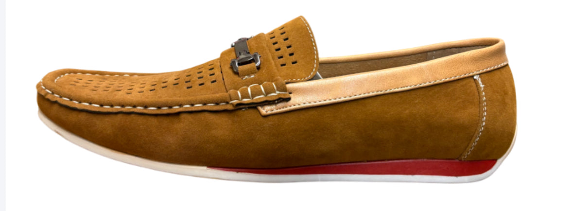 Suede Perforated Loafers with Metal Bit Dress Shoes