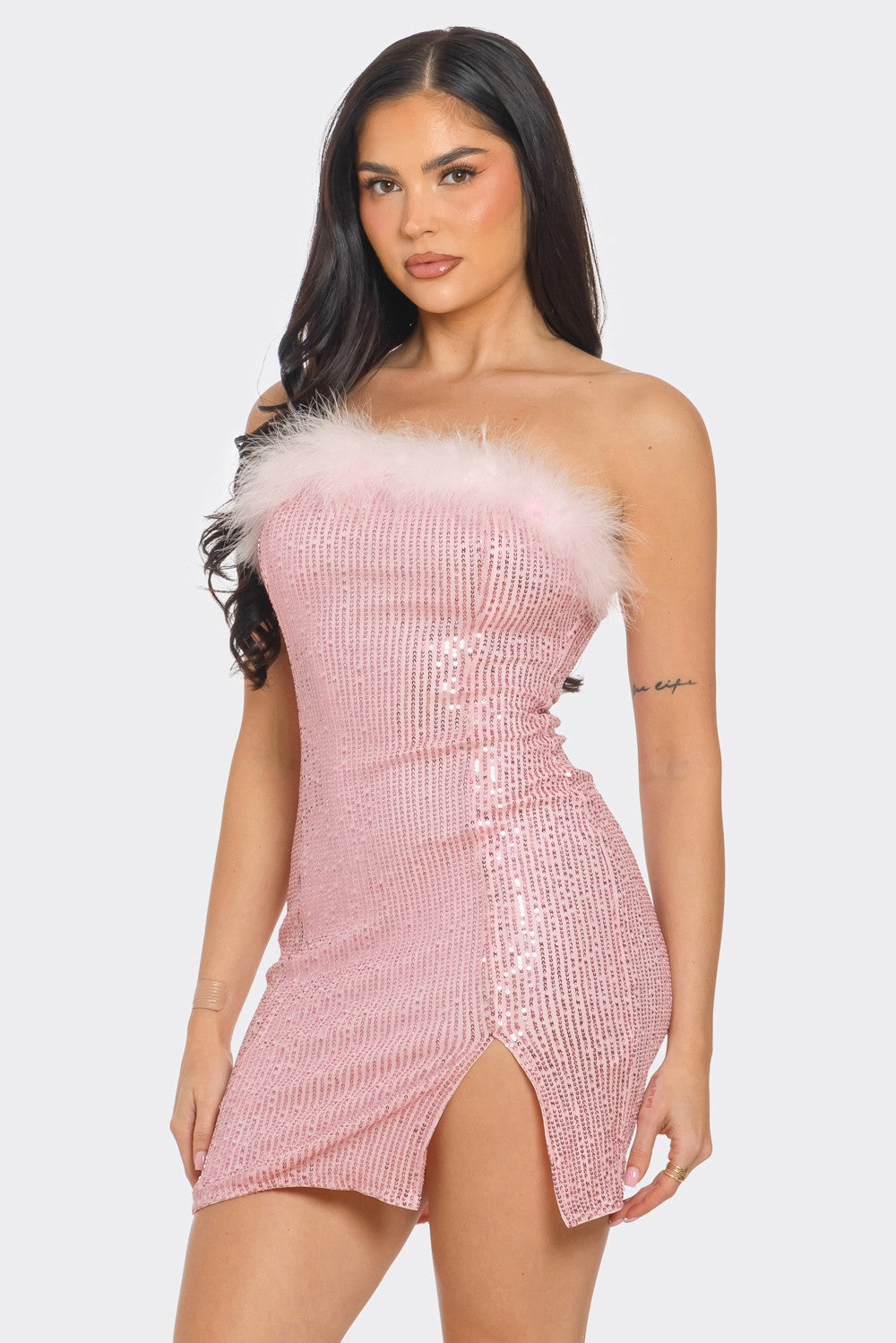Sleeveless Multicolor Sequins Tube Top and Panty Set