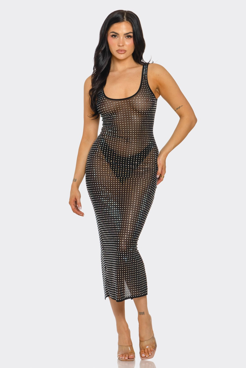 Rhinestone Fringe Bra with Red Tip Rhinestone Bralette