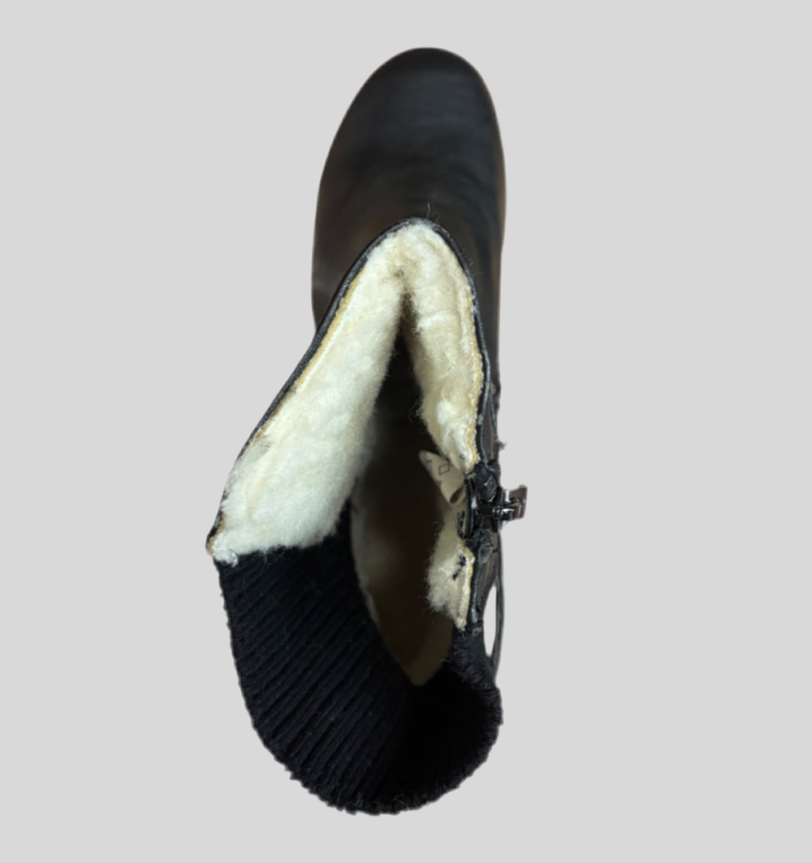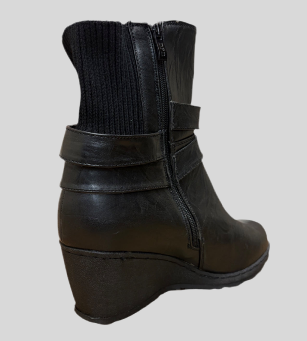 Solid Wedge Heel Boots with Ribbed Top & Buckle Detail