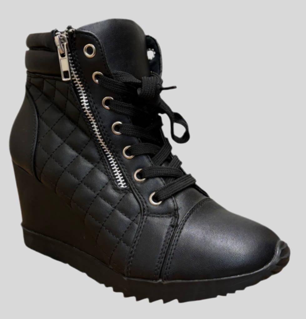 Sporty Leatherette Lace-up High Top Wedge Bootie Shoes