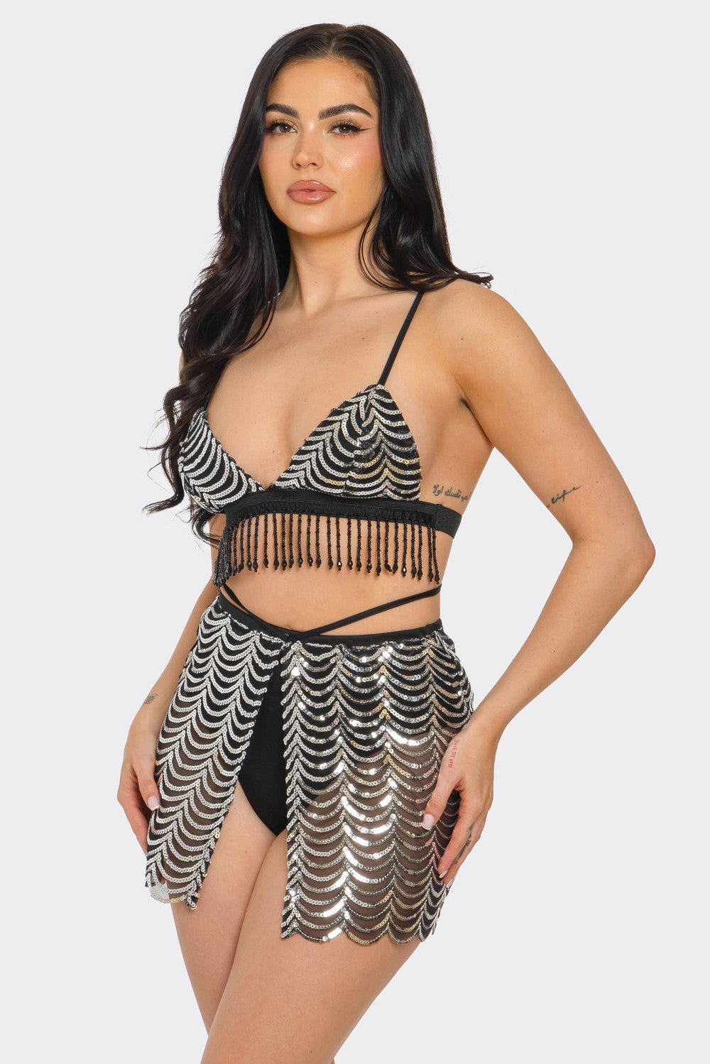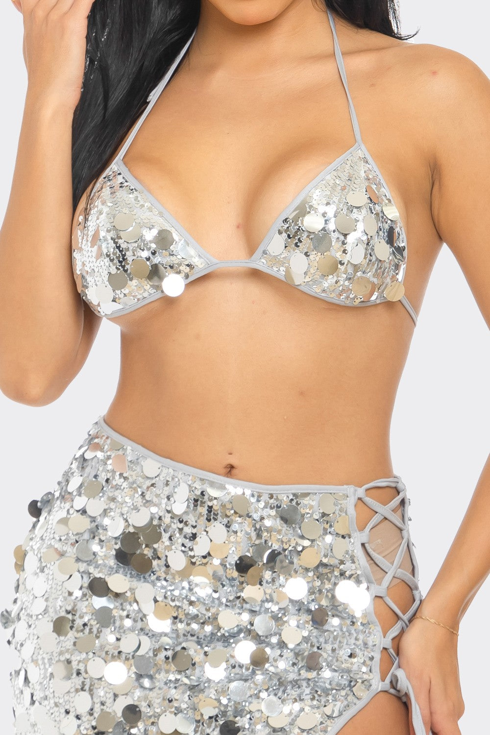 Sequin Bikini Top and Skirt Set